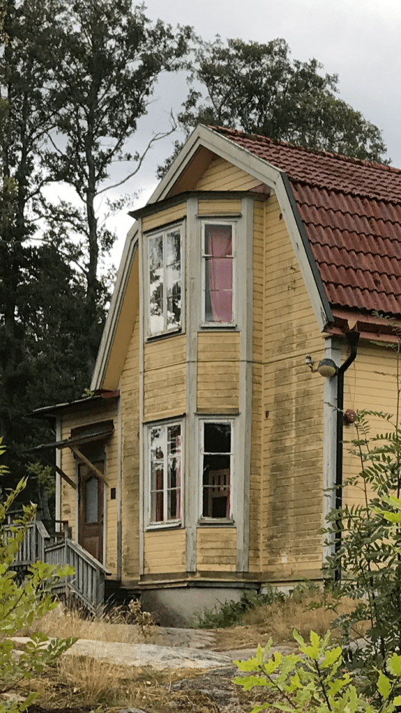 Snabbt plockar vi ihop våra saker och slänger in det i bilen. Regnet verkade inte komma så vi bestämde att ta en promenad runt på Barnens Ö bland alla de gamla husen. Barnens Ö invigdes 1912. Här bedrevs kollo-verksamhet och hit kom barn från Stockholm för att tillbringa somrarna.