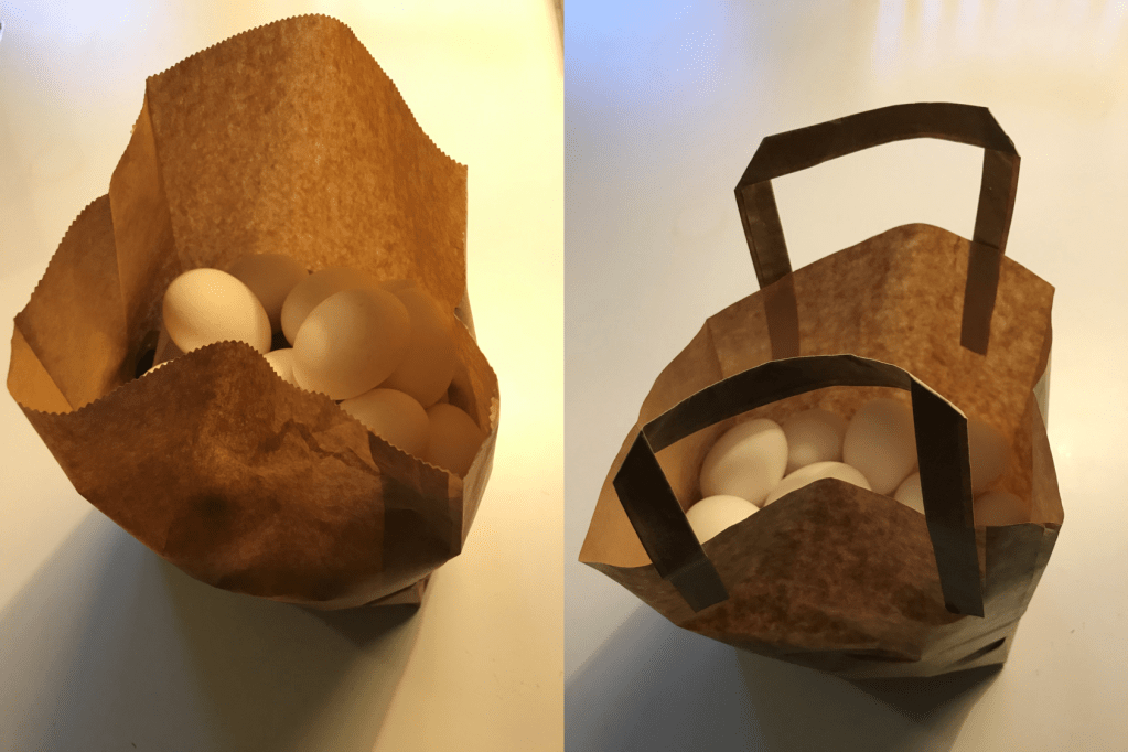 — Om du ska ge bort äggen då ska du få en lite finare påse till dem, en med handtag på.