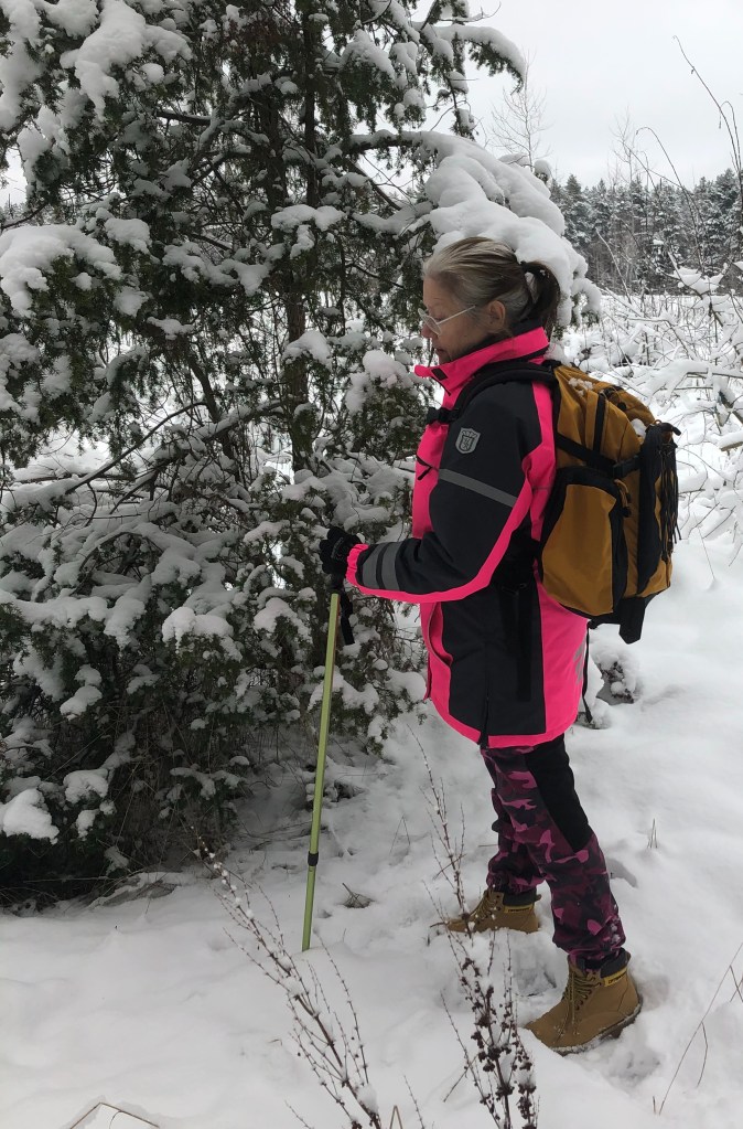 Igår var en utmärkt dag för en skogspromenad i snön. Vi packade kaffe och bullar i ryggsäcken och begav oss iväg. Vilken lycka att bo precis intill skogen, det är bara att klä på sig och sticka ut! Egentligen gillar jag skogen bäst på sommaren och hösten när det finns svamp och bär att plocka. I somras plockade jag t ex massor med lingon som fortfarande fyller min frys.