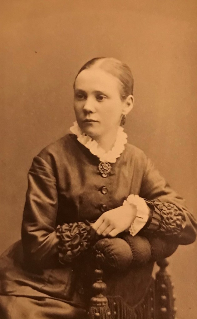 Jag ser direkt att kvinnan på fotot är väldigt lik Amanda och att hon bär samma brosch som Amanda hade. Och jag förstår då att kvinnan måste vara Amandas, typ mormors mormor eller något sådant. Jag måste se till att Amanda får fotot på sin gamla släkting.